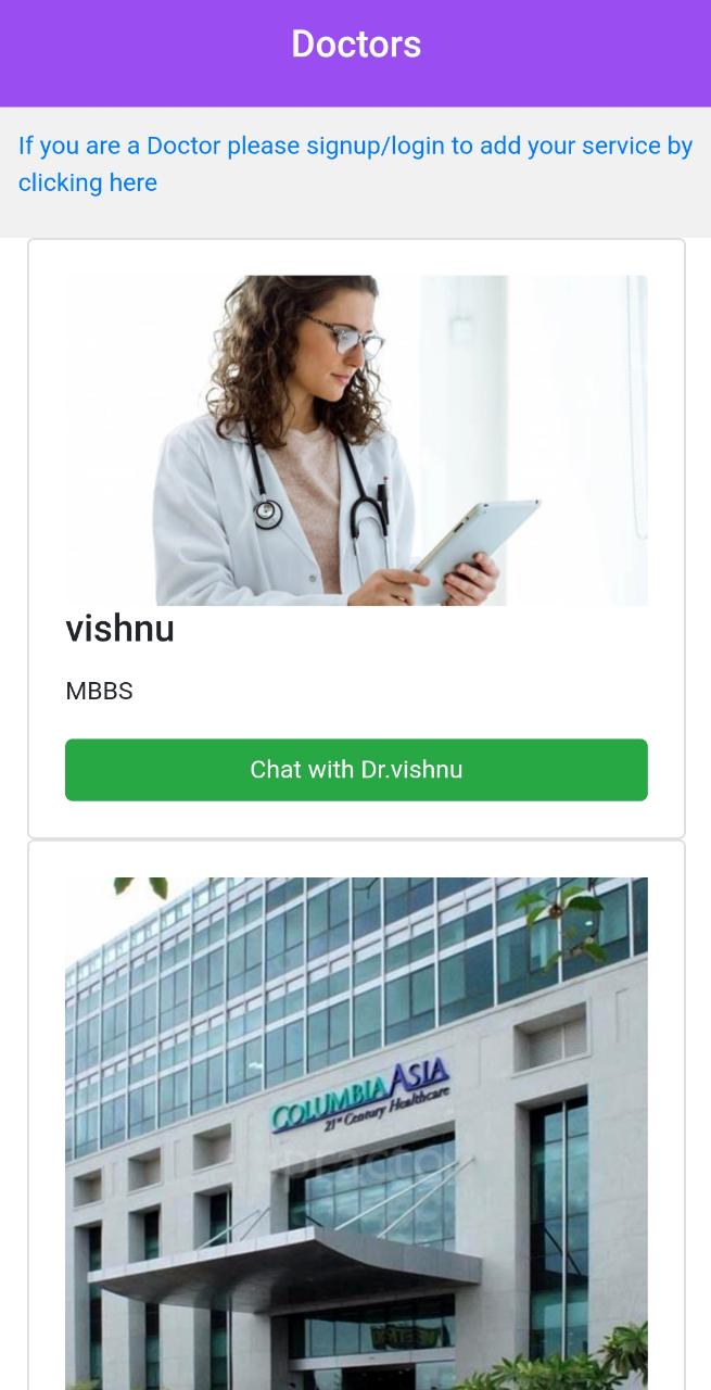 We provide contact of doctors registered in our app and users can chat with doctors through WhatsApp.