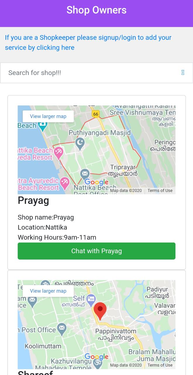 We provide list of shops and their contacts registered in our app nearby your location and you can contact them for your shopping.